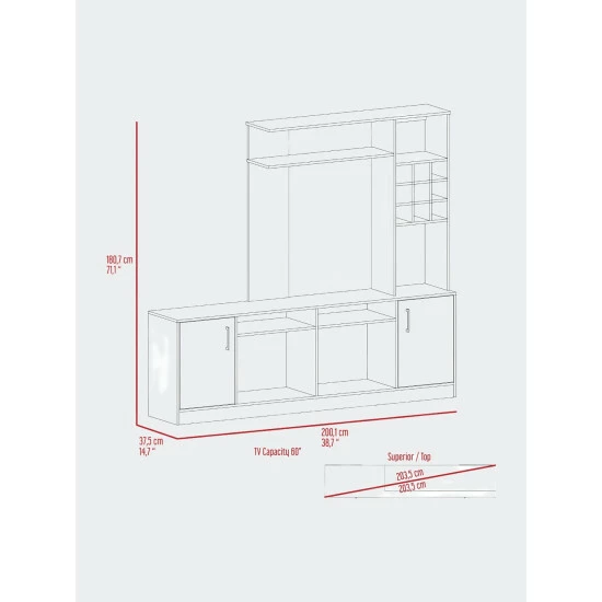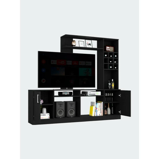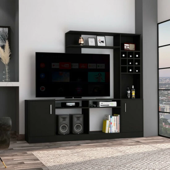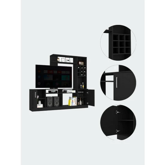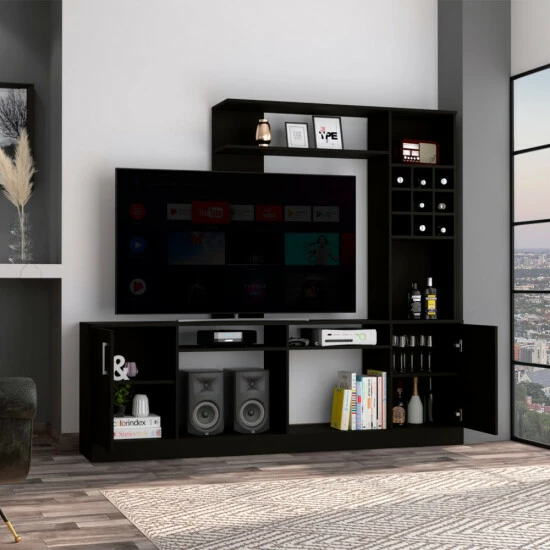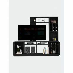 The Vibrant Entertainment Center is modern, stylish, and practical. This furniture is a beautiful addition to your home, not only for extra storage, but you can also organize it with your unique, fashionable style. Includes a tv shelf for up to 60″, which is excellent for that modern touch in your home, and you can also reveal all of your favorite decorative elements on the countertop (203.5″) and includes six cubbies (4.3″ H x 4.3″ W) and also designed with elegant black wengue manufactured wood finish.