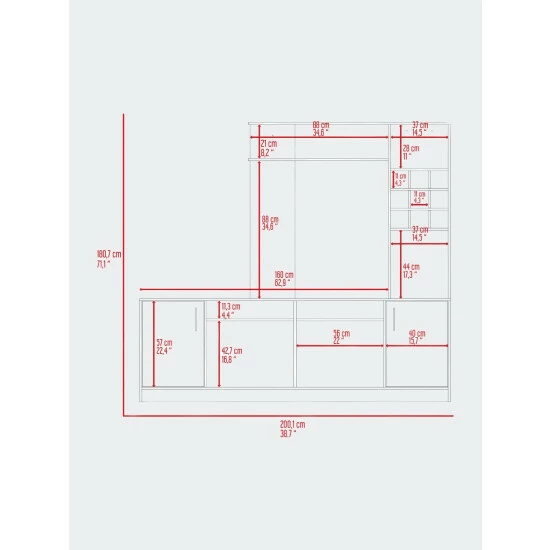 - Dimensions: 180.7″ H x 200.1″ W x 14.7″ D