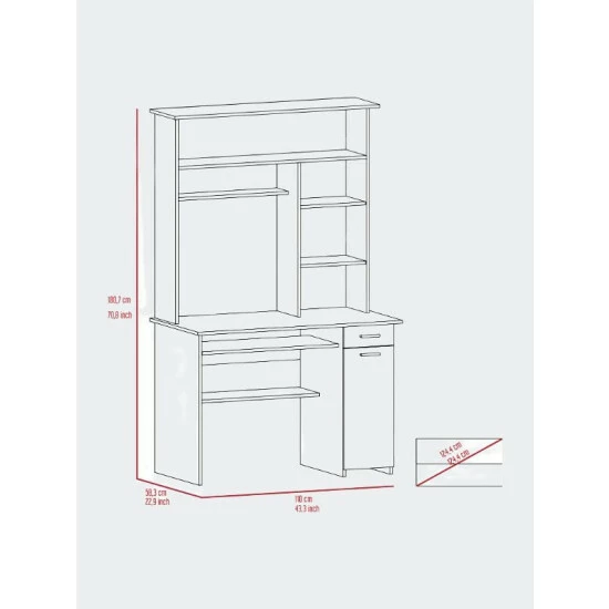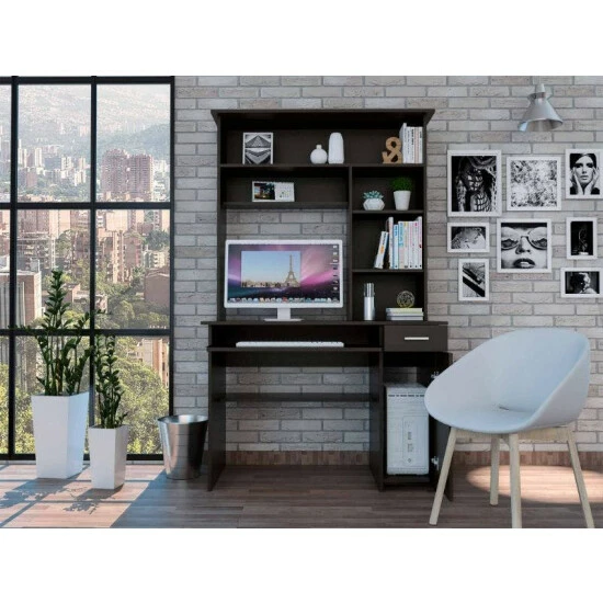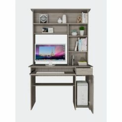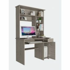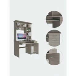 Weston Two Writing Computer Desk: If you are looking for an office or home desk that fits in any space, that is light and ergonomic; this is the perfect desk for you. It has numerous drawers and shelves making it easy to store files, notebooks, books, or accessories they need to work or study. This desk has 25.5″ in height of legroom for your comfort. The hutch features five spacious shelves A 23.6″ H cabinet was designed as a special place to put your PC tower while providing enough ventilation (no backdrop). Designed with elegant black wengue, gray oak and light gray manufactured wood finish.