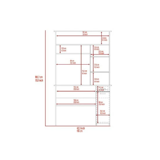 - Dimensions: 70.8″ H x 43.3″ W x 22.9″ D