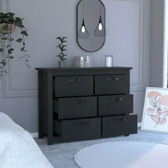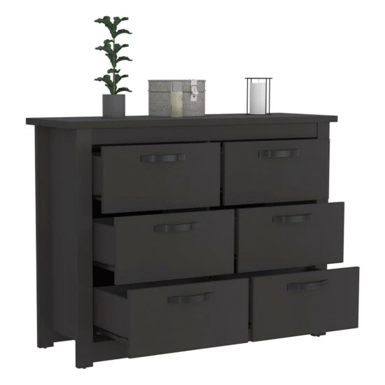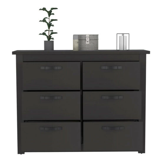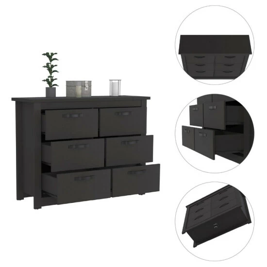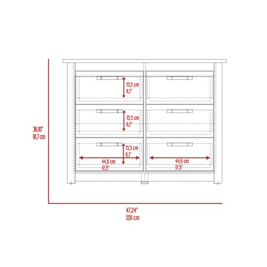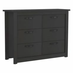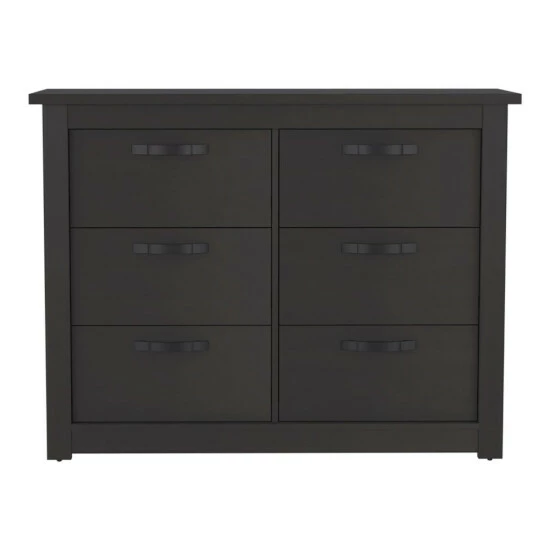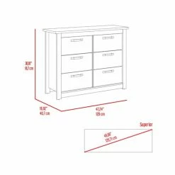 Westport Six Drawer Double Dresser, you know what they say, one person’s junk is another person’s treasure. Well with this dresser, you’ll have plenty of space to store all your treasures! This contemporary stylish, functional dresser has six spacious drawers (6,1”H x 44,6”W) to help you get organized; it also includes an ample Superior Top (47,24”W x 16,02” D) especially to expose your favorite decor. Designed with elegant black wengue and light gray manufactured wood finish.