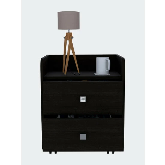 York Nightstand, are you one of those people who can’t find a place to put all your stuff and accumulate much clutter all over your room? The York Night Stand is perfect for you. You will be able to see these spaces much more organized. It has two drawers which you can use to store your accessories, the countertop of the nightstand can be used to put your favorite decor. In addition, this nightstand features the best quality of hardware: a drawer slide made of cold-rolled zinc steel and four casters. Designed with elegant black wengue and light gray manufactured wood finish.