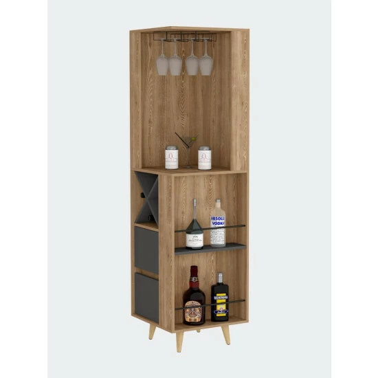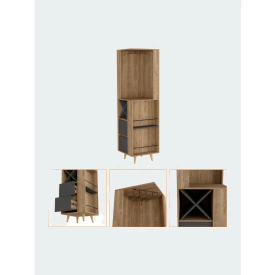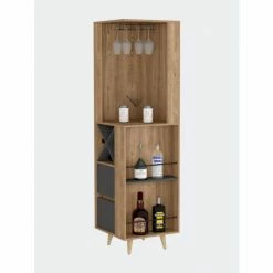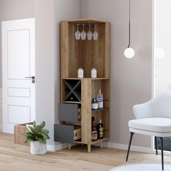 Ziton corner bar cabinet, it’s not a party until the ziton corner bar cabinet arrives. This unique contemporary design is perfect for any corner and includes ample storage for your bar needs. With two drawers (4,4”h x 10,8”w), a spacious countertop (19,6”w x 19,6′ ‘d) perfect for your favorite drinks, and two side shelves (16,3”h x 5,4”w), you’ll have everything you need at your fingertips. So, invite your friends over, pour some drinks, and get the party started! Designed with elegant pine-matt gray manufactured wood finish.