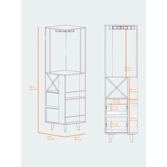 - Dimensions: Height: 70.8″ x Width: 19.6″ x Depth: 19.6″